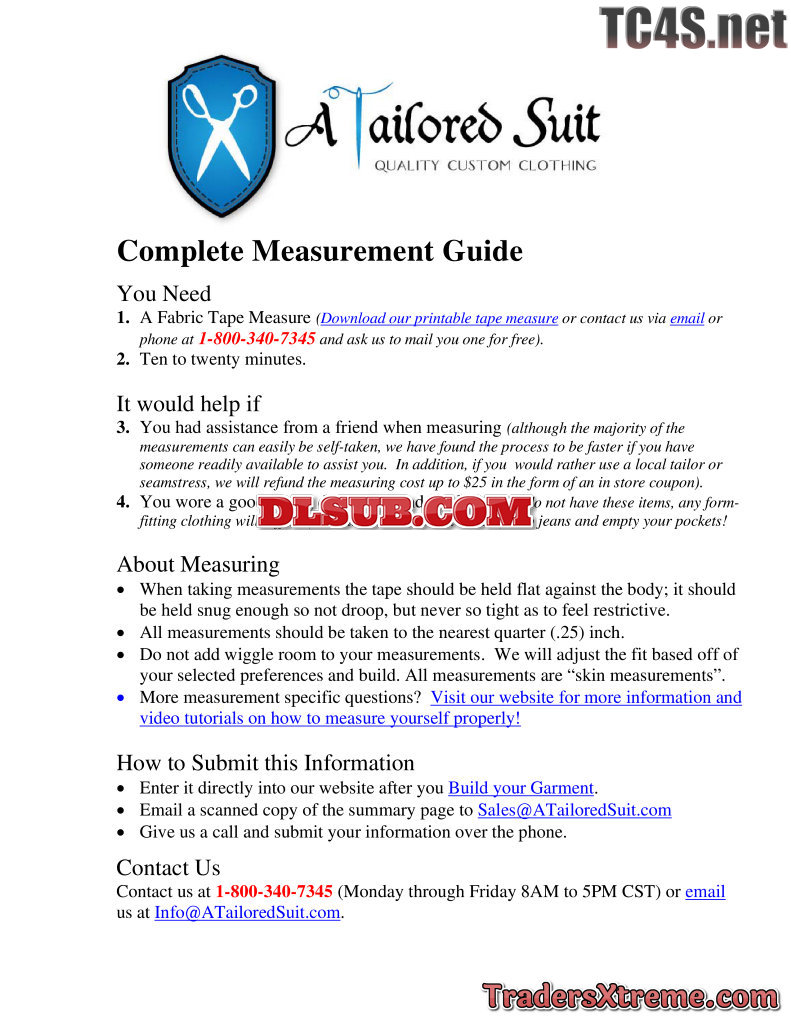 Complete Mens Suit Measurement Guide - JPG Image File