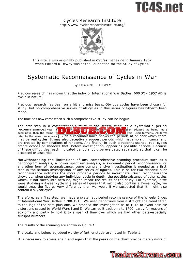 E R Dewey Systematic Reconnaissance Of Cycles In War