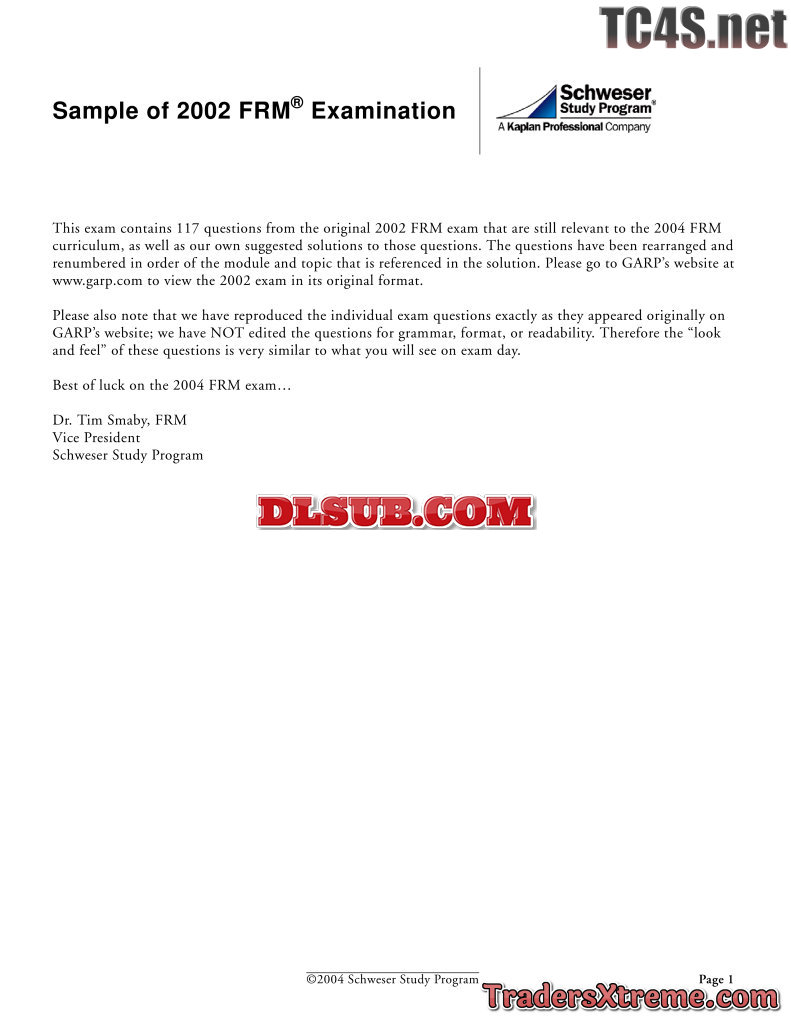 2002 Frm Examination By 2004 Schweser Study Program With Answers - JPG Image File