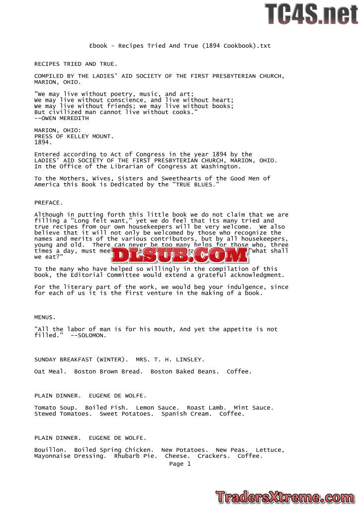 Recipes Tried And True 1894 Cookbook - JPG Image File