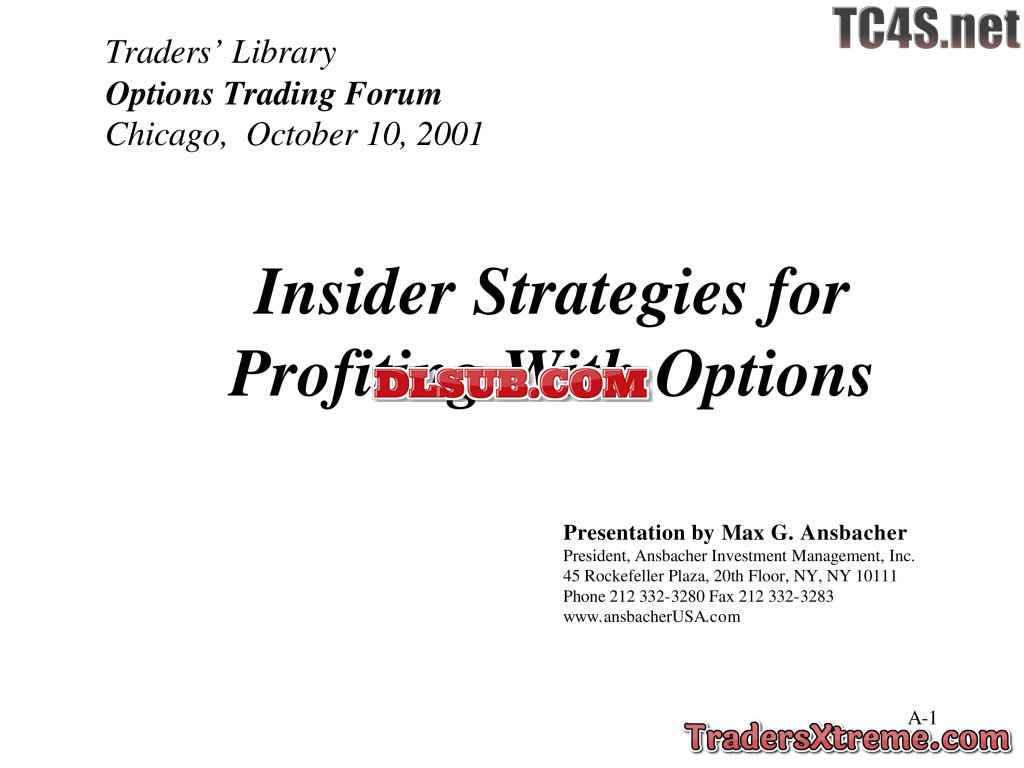 Max Ansbacher Insider Strategies For Profiting With Options 1 Dvd