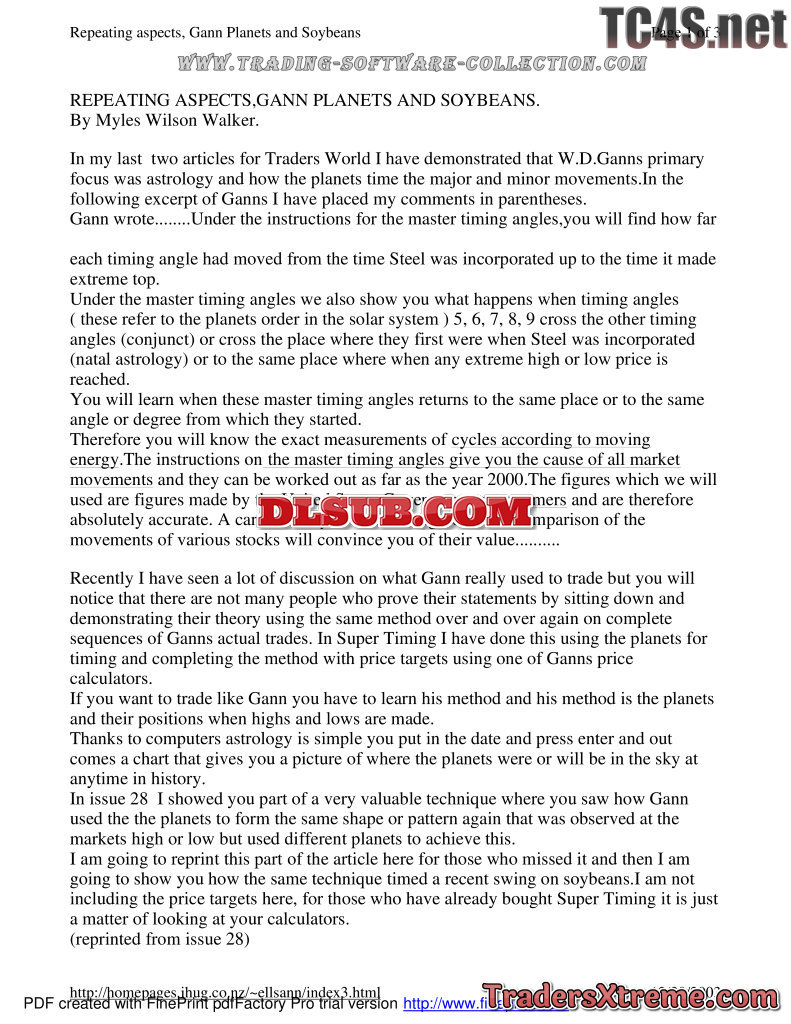 Myles Wilson Walker Repeating Aspects Gann Planets And Soybeans Usd 8