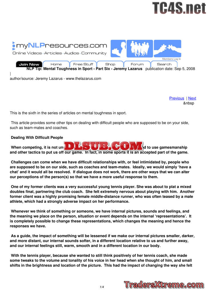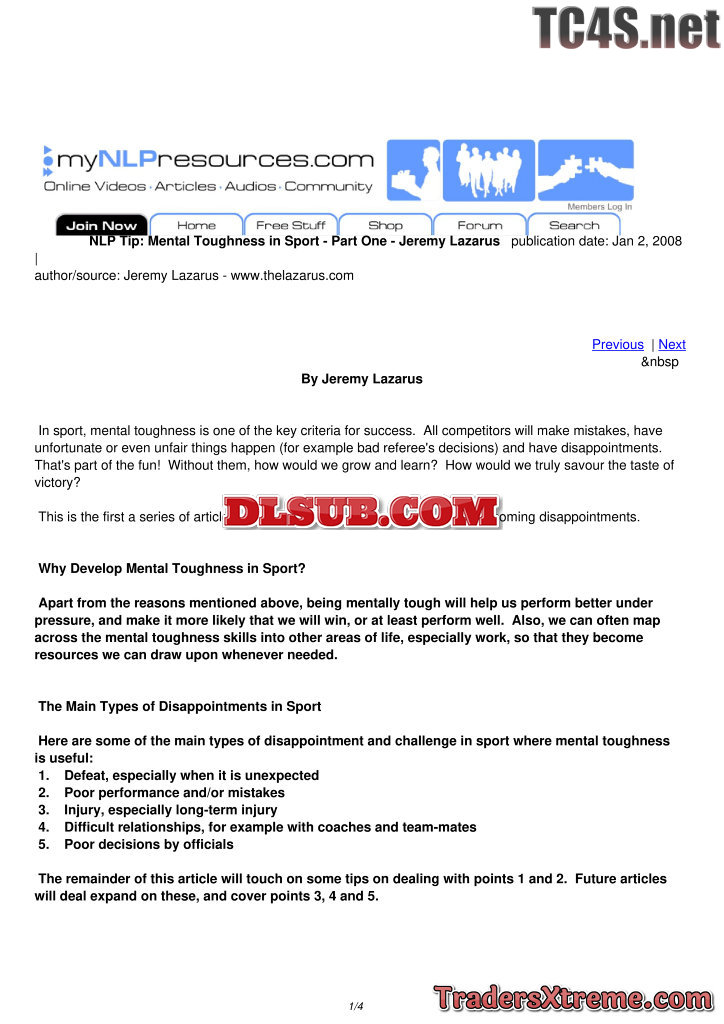 Mental Toughness In Sport Part Four Jeremy Lazarus - JPG Image File