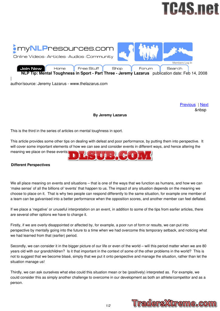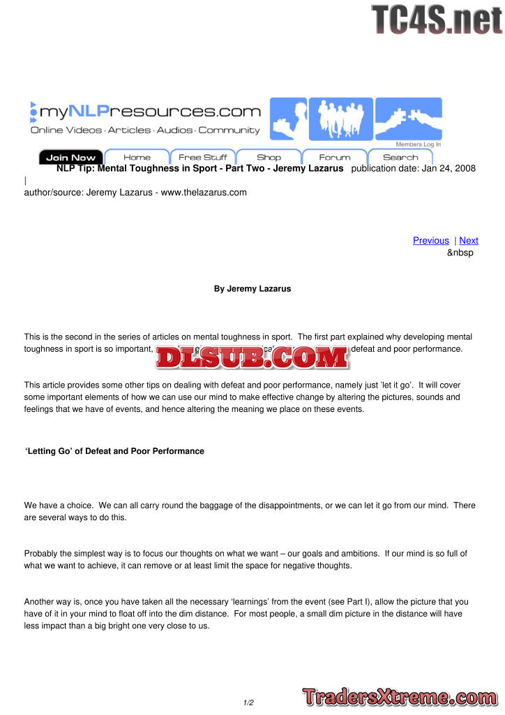 Mental Toughness In Sport Part Five Jeremy Lazarus - JPG Image File