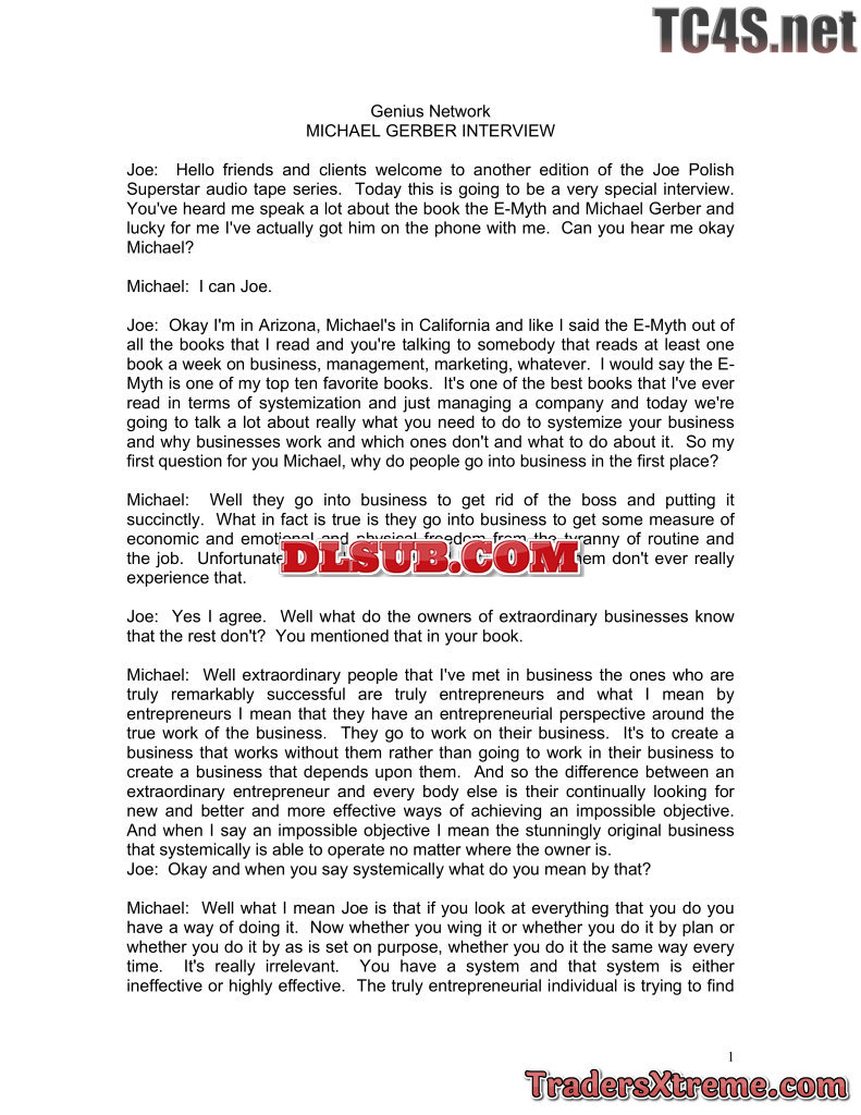 Genius Network Michael Gerber Emyth Interviewed By Joe Polish - JPG Image File