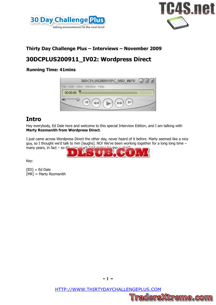 105 Thirty Day Challenge Plus Post 30dc Transcript - JPG Image File