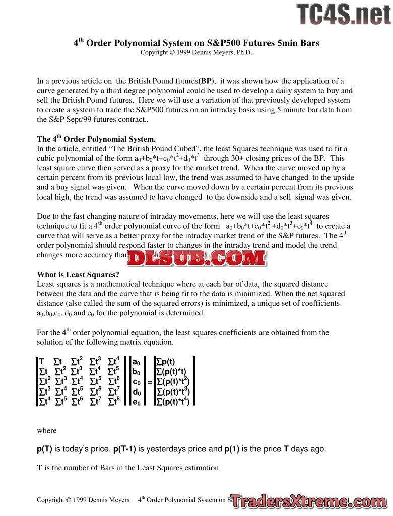 Dennis Meyers 4th Order Polynomial System On Sp500 5min Bar Futures - JPG Image File