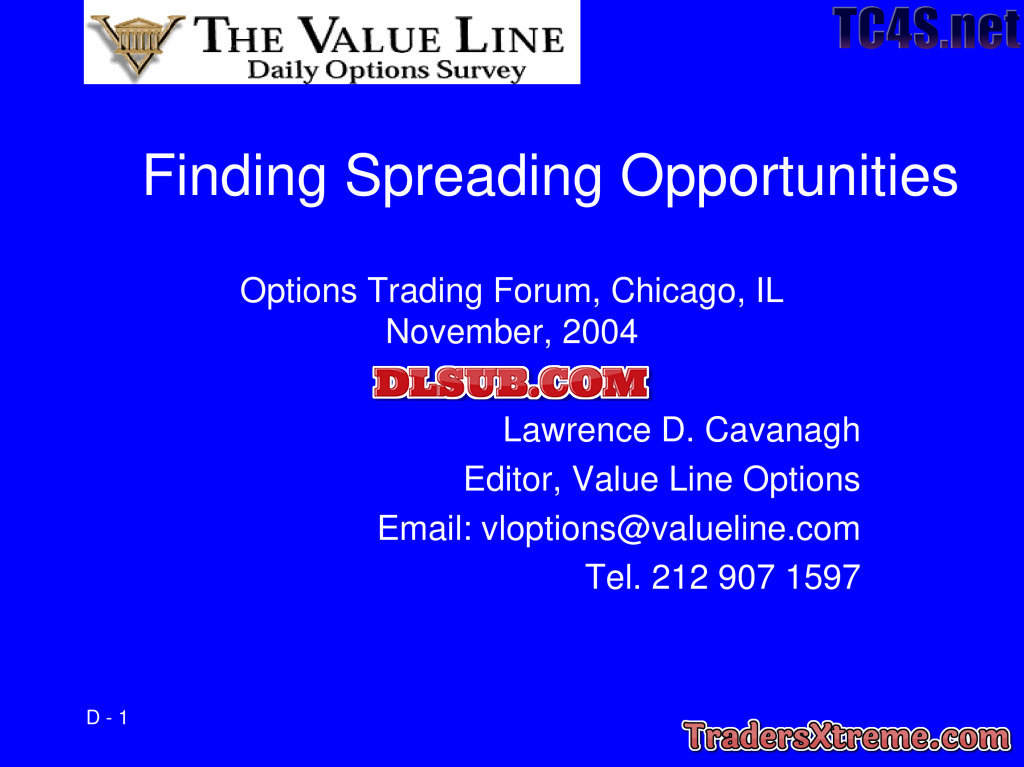 Lawrence Cavanagh Option Screening Spreads Finding Profitable Trades 1 Dvd