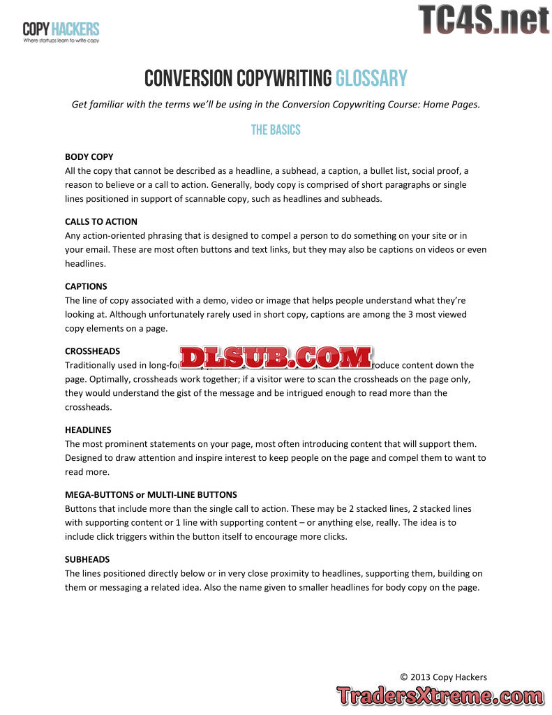All Weeks Copy Hackers Conversion Copywriting Glossary Of Key Terms - JPG Image File