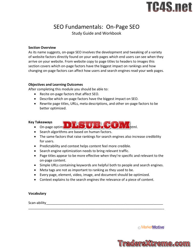 On Page Seo Study Guide And Workbook - JPG Image File