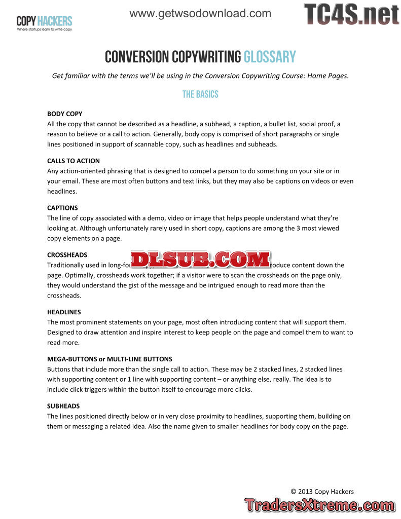 All Weeks Copy Hackers Conversion Copywriting Glossary Of Key Terms - JPG Image File