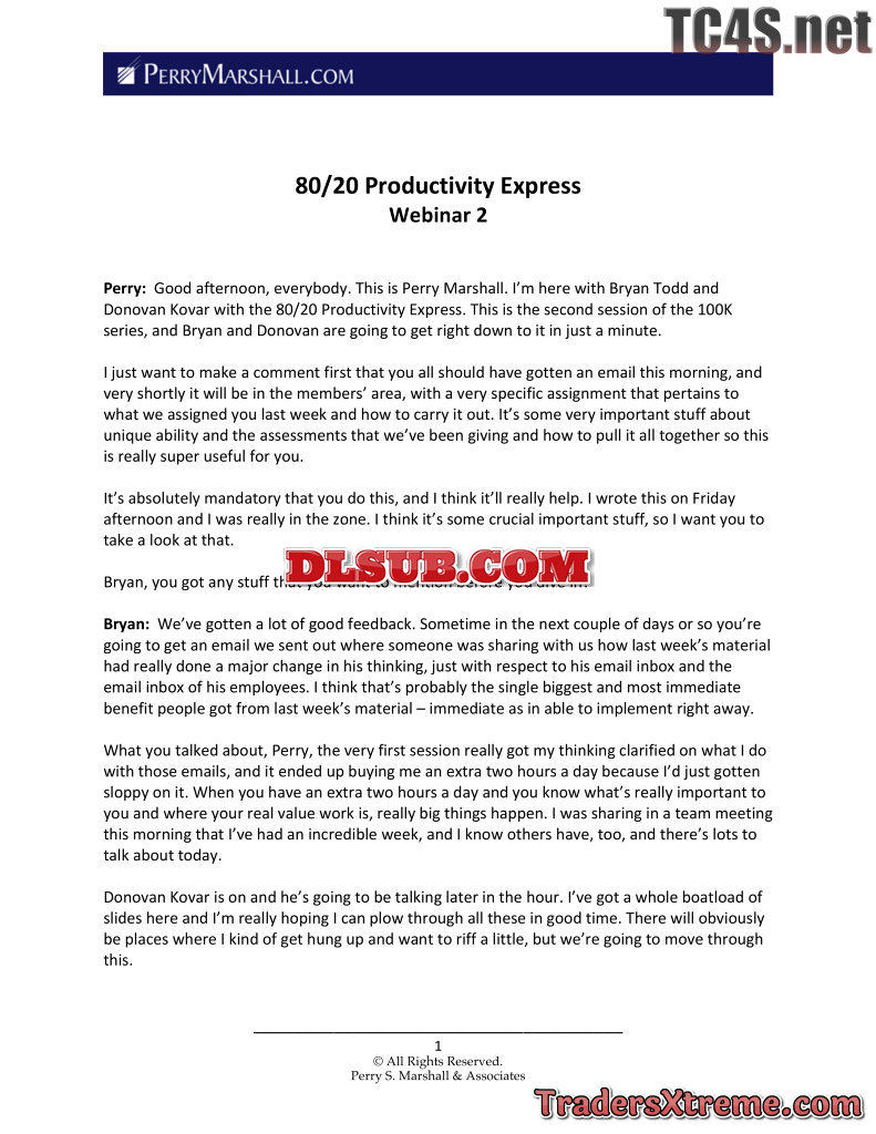 Perry Marshall 80 20 Force Multiplier Usd 500k
