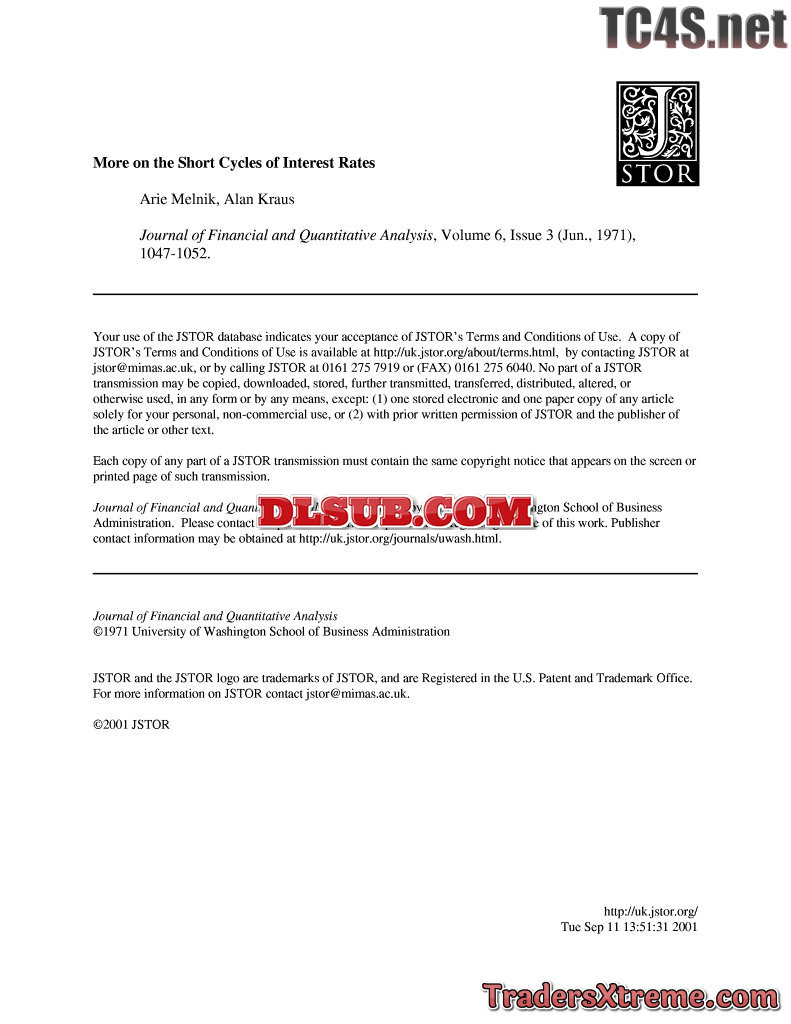 Arie Melnik And Alan Kraus More On The Short Cycles Of Interest Rates