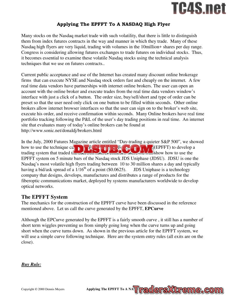 Dennis Meyers Applying The End Point Fast Fourier Transform To A Nasdaq Highflyer - JPG Image File