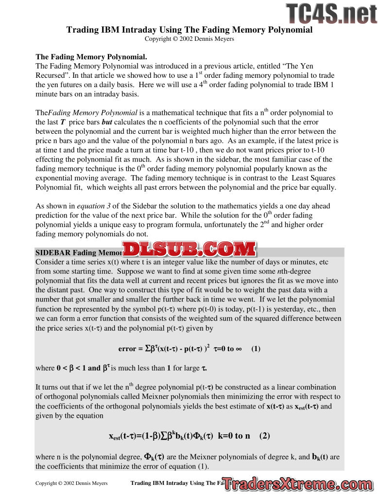 Dennis Meyers Trading Ibm Intraday Using The Fading Memory Polynomial - JPG Image File