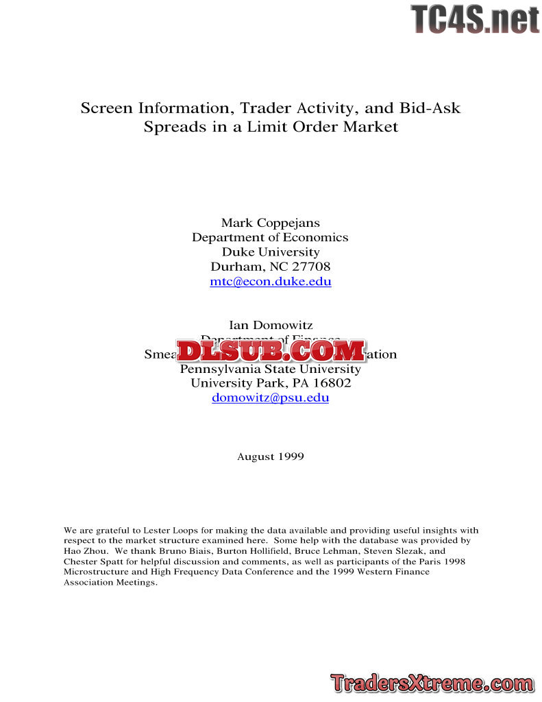 Screen Information Trader Activity And Bid Ask Spreads In A Limit Order Market By Mark Coppejan - JPG Image File
