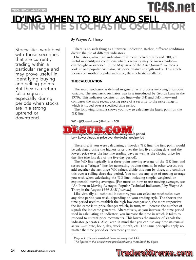 Wayne A Thorp When To Buy And Sell Using The Stochastic Oscillator - JPG Image File