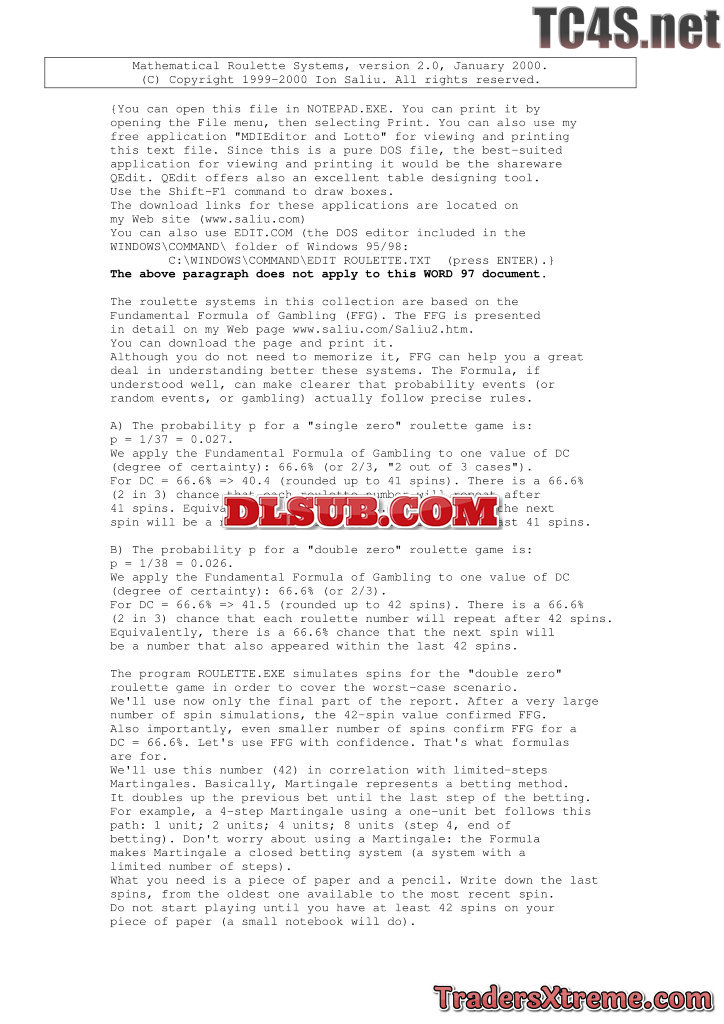 Ion Saliu Mathematical Roulette Systems V2